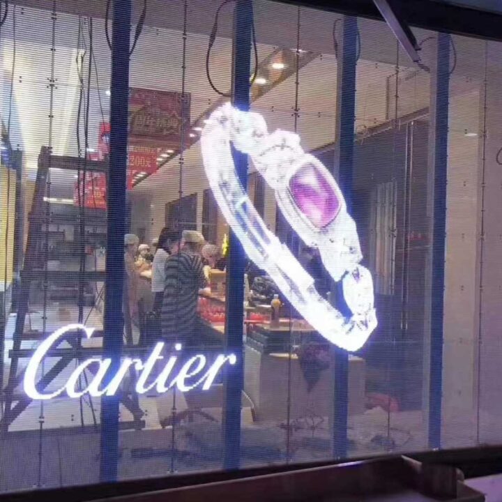 Transparent LED Display allowing users to see through it while displaying images or video on screen. It usually fixed behind window or glass wall to create a full colour video screen without blocking view in or out of the building.