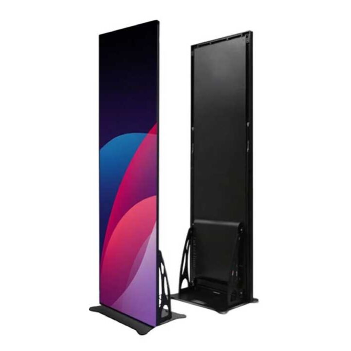 LED Standee Display covered by lightweight aluminum bracket stand making it durable and easy to transport. Users can combine multiple screens seamlessly to create a larger display, providing flexibility in presentation. Content can be uploaded and managed through a smartphone, giving users the convenience to change and update content anytime and anywhere